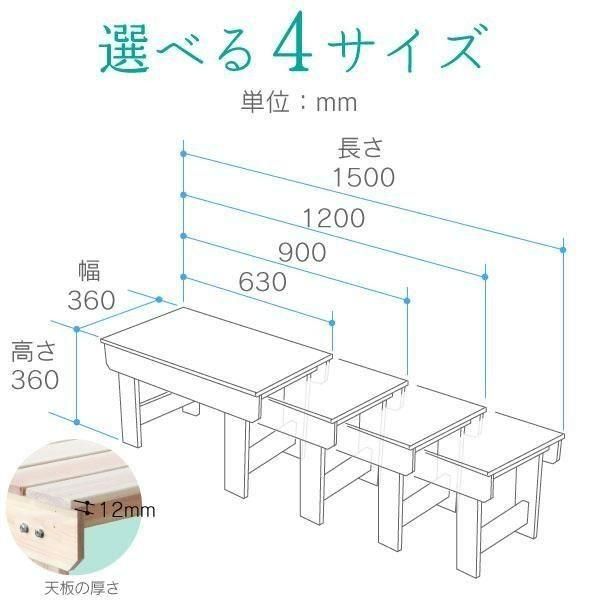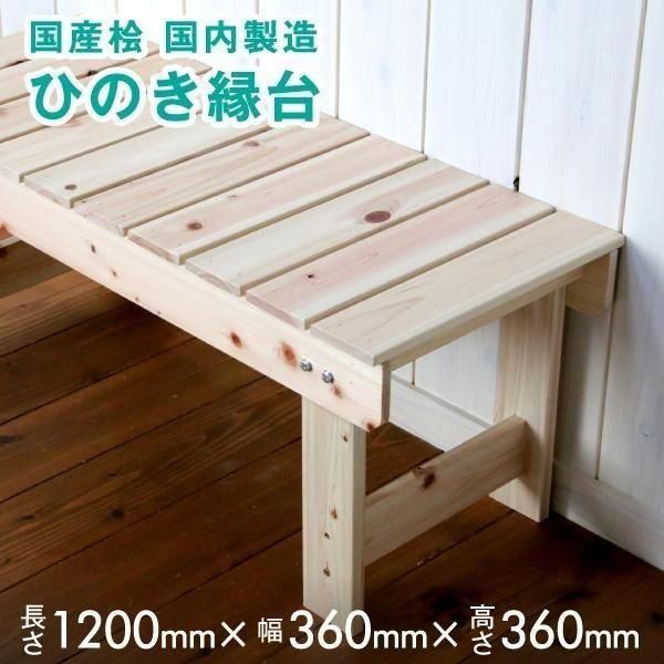 【送料無料】 塗装 桧 縁台 (高さ360×幅360×長さ1200ミリ) 約5.5kg 脚固定式 ベンチ 木製 チェア 玄関ベンチ イス 長椅子 腰掛