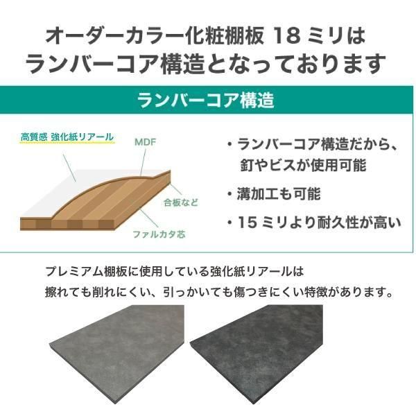 【大型宅配便】プレミアムオーダーカラー化粧棚板 厚さ18mm 長さ1201mm〜1500mm 奥行601mm〜900mm(長さ1面はテープ処理済み)