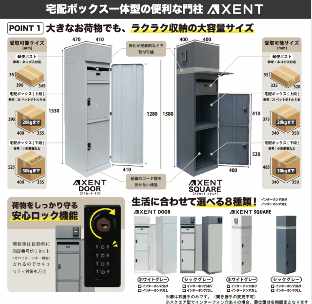 宅配ボックス付き統合型機能門柱。組立不要で即使用可能。